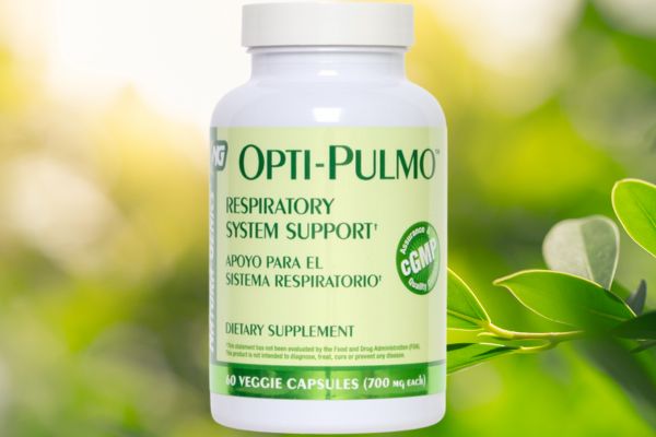Opti-Pulmo™ ha sido formulado para apoyar el sistema respiratorio. Este suplemento es una combinación de vitamina A (betacaroteno), vitamina C, vitamina E, bioflavonoides cítricos y extractos de hierbas.